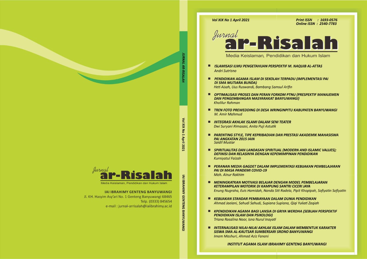 Ar-Risalah: Media Keislaman, Pendidikan dan Hukum Islam is a Islamic journal that focuses on critical studies of Islamic studies, education, and Islamic law. Ar-Risalah published by Institut Agama Islam Ibrahimy Genteng Banyuwangi. Publishing two times a year: issues 1 on april and issue 2 on october. Ar-Risalah have a registration number print ISSN 1693-0576 and online ISSN 2540-7783 published by the Indonesian Institute of Sciences (LIPI). Ar-Risalah has been indexed by Sinta, Google Scholar, Garuda, Moraref, Indonesia One Search, PKP Index, and Microsoft Academic.